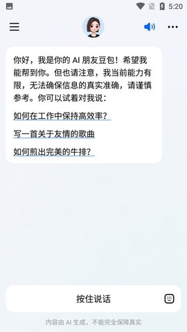 最近更新热门排行豆包app下载安装免费官方正版是字节跳动官方打造的ai对话模型,全新的对话模式,给用户更为真实、有趣的对话体验。为用户提供多个智能聊天选择,趣味ai机器人问答,感兴趣的朋友快来下载体验吧。