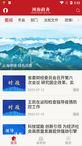 最近更新热门排行河南政务app是由大河网络传媒集团有限公司研发的一款新媒体政务发布信息服务平台,该平台目前开通了河南重要要闻与领导活动、部门、地方、民生保障、法规文件、政策解读、公告公示、图片等新闻栏目。