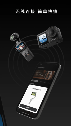 通过蓝牙或 wi-fi 无线连接 osmo 系列云台设备,实现远程控制和高清画面实时预览