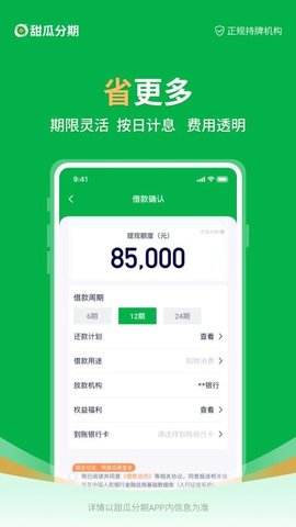 甜瓜分期 app 根据用户的身份信用信息进行综合评估,为用户提供实际的贷款额度。这种科学的审核方式,既保证了贷款的安全性,又能满足用户合理的资金需求。