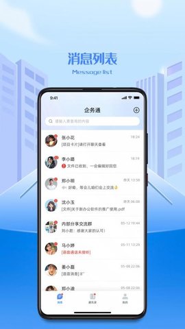最近更新热门排行企务通app是一款助力企业快速处理业务与沟通的通讯软件。平台结合通讯功能与安全技术,支持实时通讯,方便用户查看和处理各类通讯信息,高效推进业务。用户可随心使用通讯功能,与企业内部成员进行图文、视频、语音等多种形式的沟通,既能提高效率,又能降低通讯成本,便于快速传递信息。此外,平台可对通讯好友进行管理,自动按备注首字母分类,方便用户快速查找好友沟通。