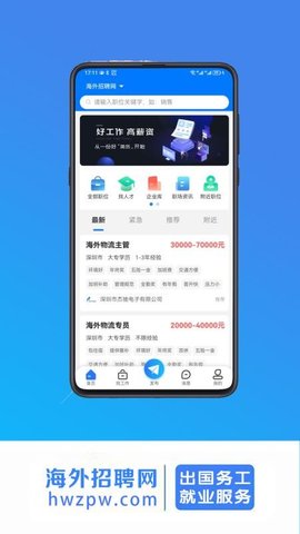 最近更新热门排行海外招聘网app是一款专注于提供出国劳务信息的求职招聘软件,覆盖各行各业职位资源,满足不同人群线上求职需求,方便查找最新推荐的职位,提高找工效率,带来全新求职体验。用户在线选择职位类型后,可轻松找到合适资源,线上投递简历获取面试机会,让寻找出国劳务信息更省心,减轻求职压力。此外,官方网站严格认证企业资质,人工审核职位信息,为线上找工提供安全保障,让寻找国外工作更放心。