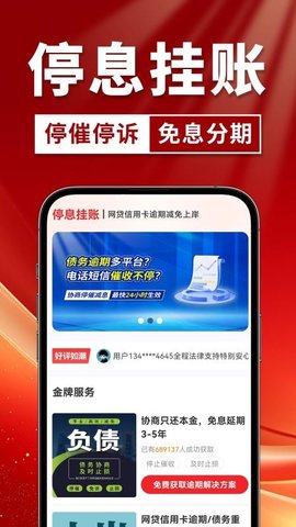 服务多元:汇聚多种债务处理服务类型,全面满足不同负债用户的多样化需求,让用户享受更贴心的服务体验。