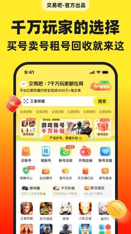 最近更新热门排行交易吧 app 作为一款安全正规的游戏账号交易软件,在游戏交易领域表现出色。它广泛覆盖了王者荣耀、和平精英、原神、火影忍者、光遇、蛋仔派对等众多热门游戏的账号资源,充分满足不同玩家的兴趣偏好。用户能够随心挑选心仪游戏,在线查看账号详细信息,自由选择高端游戏账号进行交易。通过线上签约合同并支付费用的方式,无论是租赁还是购买账号,都能为用户带来全新的交易体验。同时,平台提供交易保障,让用户线上交易更加安心。此外,交易吧凯发k8pa旗舰官网版还提供专业的游戏账号回收服务,用户可在线完善账号信息,实现高价回收,精准评估价格,轻松将账号变现。