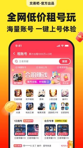租账号:用户寻找感兴趣的游戏账号,支付相应费用后即可租赁账号,满足短期体验不同账号的需求。