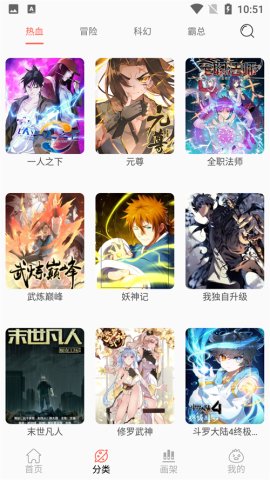 通过分类版块找到喜爱的漫画,再选择合适的书源。