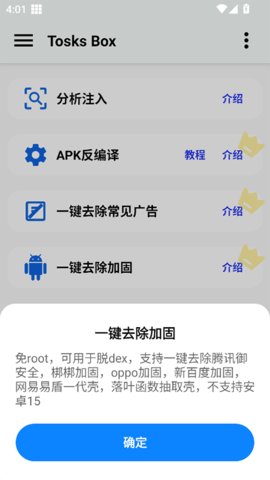集成dex2c、vmp、反编译、重打包等数十种实用工具,无需切换多个软件。