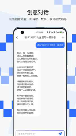 最近更新热门排行积墨chat是一款基于先进语言模型的智能ai聊天应用,能够精准理解用户需求,提供高质量的回答和建议。无论是日常闲聊、知识问答,还是工作学习中的专业问题,它都能快速响应,给出系统化、有深度的解答。操作简单直观,只需输入关键词或问题,即可获得精准答案,是提升效率、获取知识的智能伙伴。