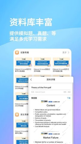 资料丰富:涵盖模拟试卷、历年真题及知识资料等,满足用户多样化的学习需求。