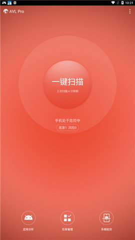 avl手机反病毒引擎(avl pro)可以完美运行在android平台上,全中文界面,拥有应用分析器、任务管理器、应用扫描器三大栏目,能够帮助手机用户快速全面的检测手机中存在的病毒和木马,让你的手机时刻保持最佳的状态。