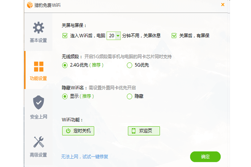 慧眼猎豹免费wifi围绕"智能连接,安全无忧"的核心价值,构建三大功能维度: