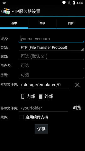 2、android设备上的ftp/sftp/ftps客户端。提供下载,上传,同步和共享功能,并支持简历。