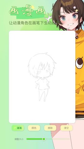 打开 app 后,可创建空白画板,调整画笔参数(粗细、颜色)进行漫画绘制;