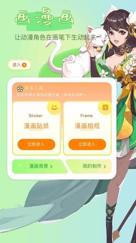 提供漫画贴纸、精美相框等装饰素材,支持自由调整大小与位置,增强作品趣味性。